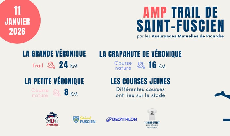Préparez-vous à plonger au cœur des Hauts-de-France pour l'AMP Trail de Saint Fuscien ! Situé à proximité d'Amiens, ce trail vous offre une expérience inoubliable au sein d'un écrin de verdure préservé. Les paysages vallonnés de la région, parsemés de charmants villages et de sentiers sinueux, vous promettent une immersion totale dans la nature. Découvrez la beauté des campagnes picardes, tout en repoussant vos limites. Un véritable appel à l'aventure au cœur de la Somme ! Bien plus qu'une simple course, c'est une invitation à explorer le patrimoine local et à savourer l'ambiance chaleureuse de la région.